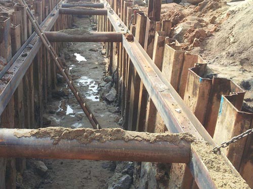鋼板樁的用途非常廣泛,在性結(jié)構(gòu)建筑上,可用于碼頭、卸貨場、堤防護(hù)岸、護(hù)墻、擋土墻、防波堤、導(dǎo)流堤、船塢、閘門等;在臨時(shí)性構(gòu)筑物上,可用于封山、臨時(shí)擴(kuò)岸、斷流、建橋圍堰、大型管道鋪設(shè)臨時(shí)溝渠開挖的擋土、擋水、擋沙等;在抗洪搶險(xiǎn)上,可用于防洪、防塌陷、防流沙等。